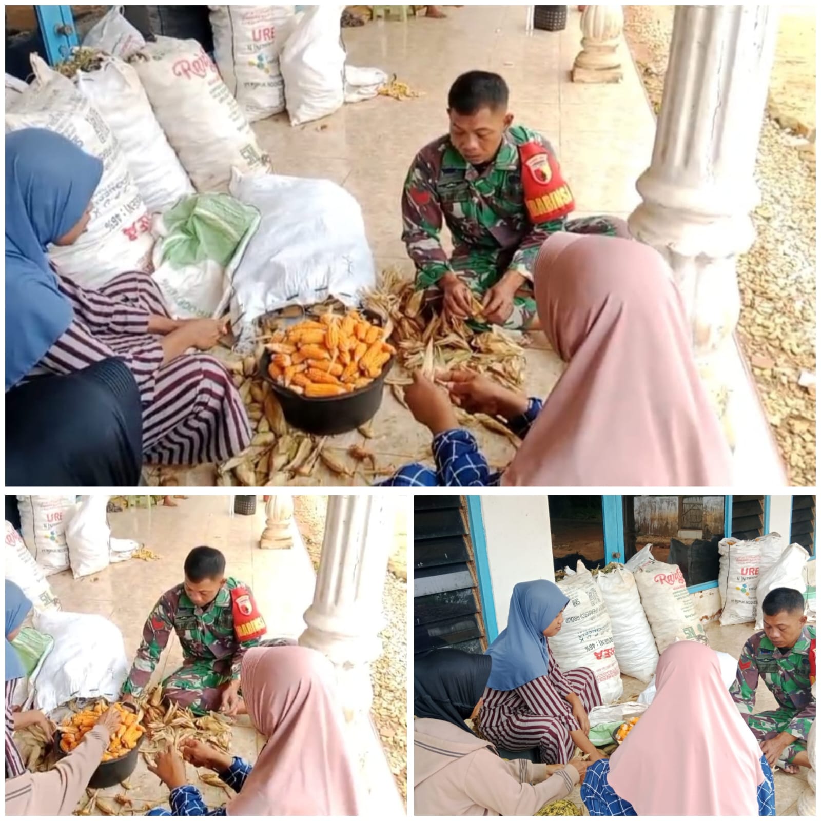 Dalam kegiatan tersebut, Koptu Agus tidak hanya berdialog, tetapi juga turun langsung membantu warga mengupas kulit jagung hasil panen. Pendekatan humanis ini dilakukan untuk membangun kedekatan sekaligus memberi motivasi agar masyarakat terus konsisten mengelola pertanian jagung secara berkelanjutan.