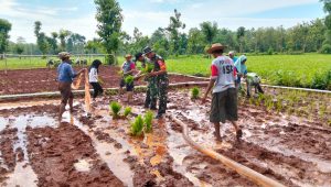 Sumenep, Jatim | suaranasionalnews.co.id – Dalam upaya memperkuat ketahanan pangan nasional dan mendukung target swasembada pangan tahun 2025, Babinsa Posramil Talango Koramil 0827/02 Kalianget bersama PPL dan para petani lakukan Gerakan Tanam Padi.