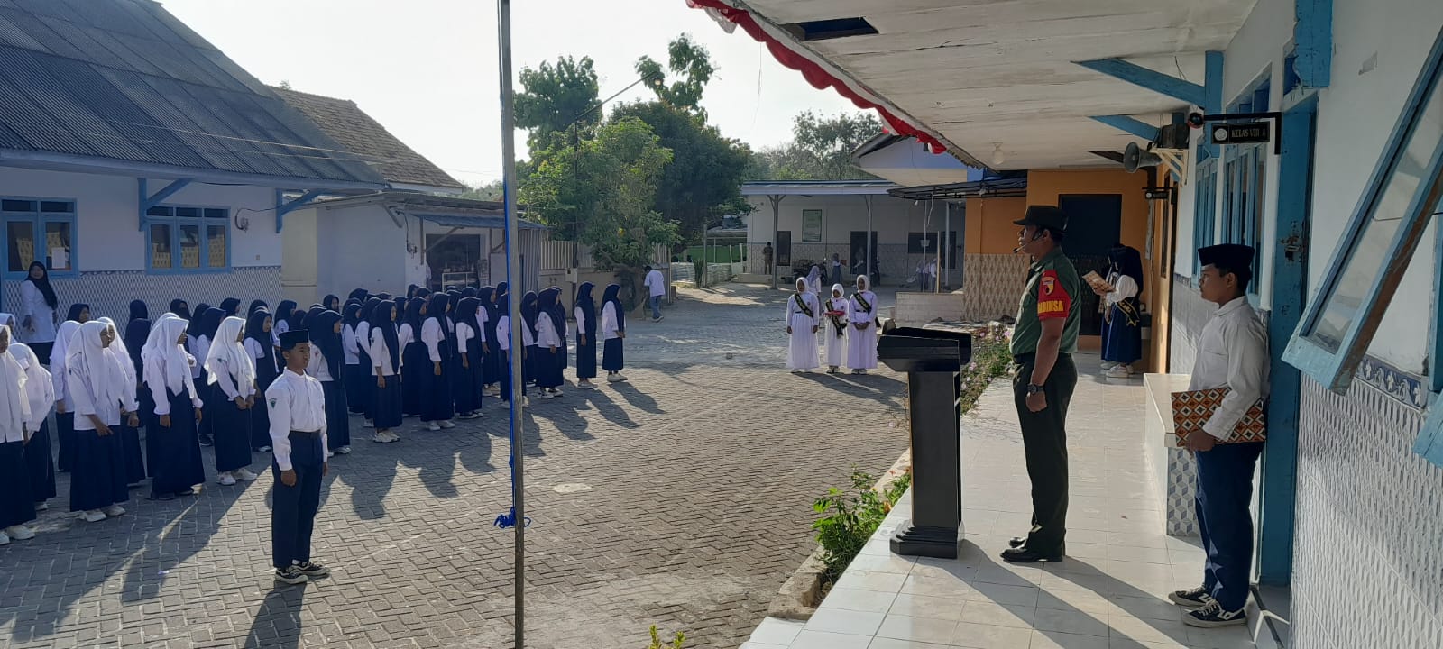 SUMENEP — Dalam rangka menanamkan kedisiplinan serta semangat cinta tanah air kepada para pelajar, Serda Imam Fauzi dari Koramil 23/Giligenting Kodim 0827/Sumenep bertindak sebagai Inspektur Upacara di Madrasah Ibtidaiyah (MI) Anwar Rudin, Desa Galis, Kecamatan Giligenting, Kabupaten Sumenep. Senin (13/10/2023).