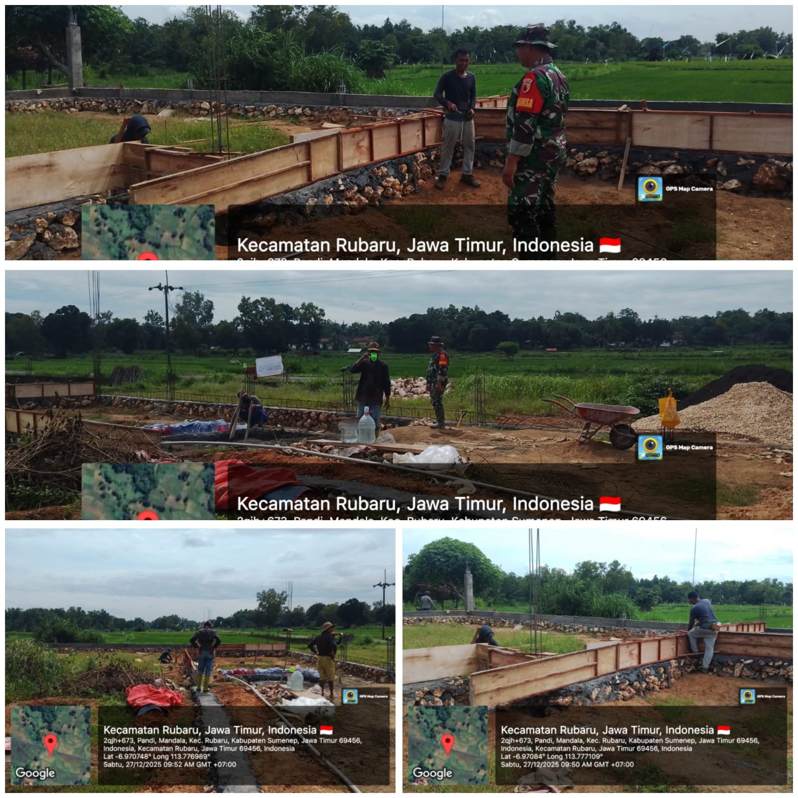 SUMENEP – Pembangunan Koperasi Desa Merah Putih di Dusun Langgar, Desa Karang Nangka, Kecamatan Rubaru, Kabupaten Sumenep, mulai menunjukkan progres di tahap awal. Babinsa Koramil 0827/13 Rubaru turun langsung ke lokasi untuk mendampingi proses pengerjaan pondasi, Sabtu (27/12/2025).