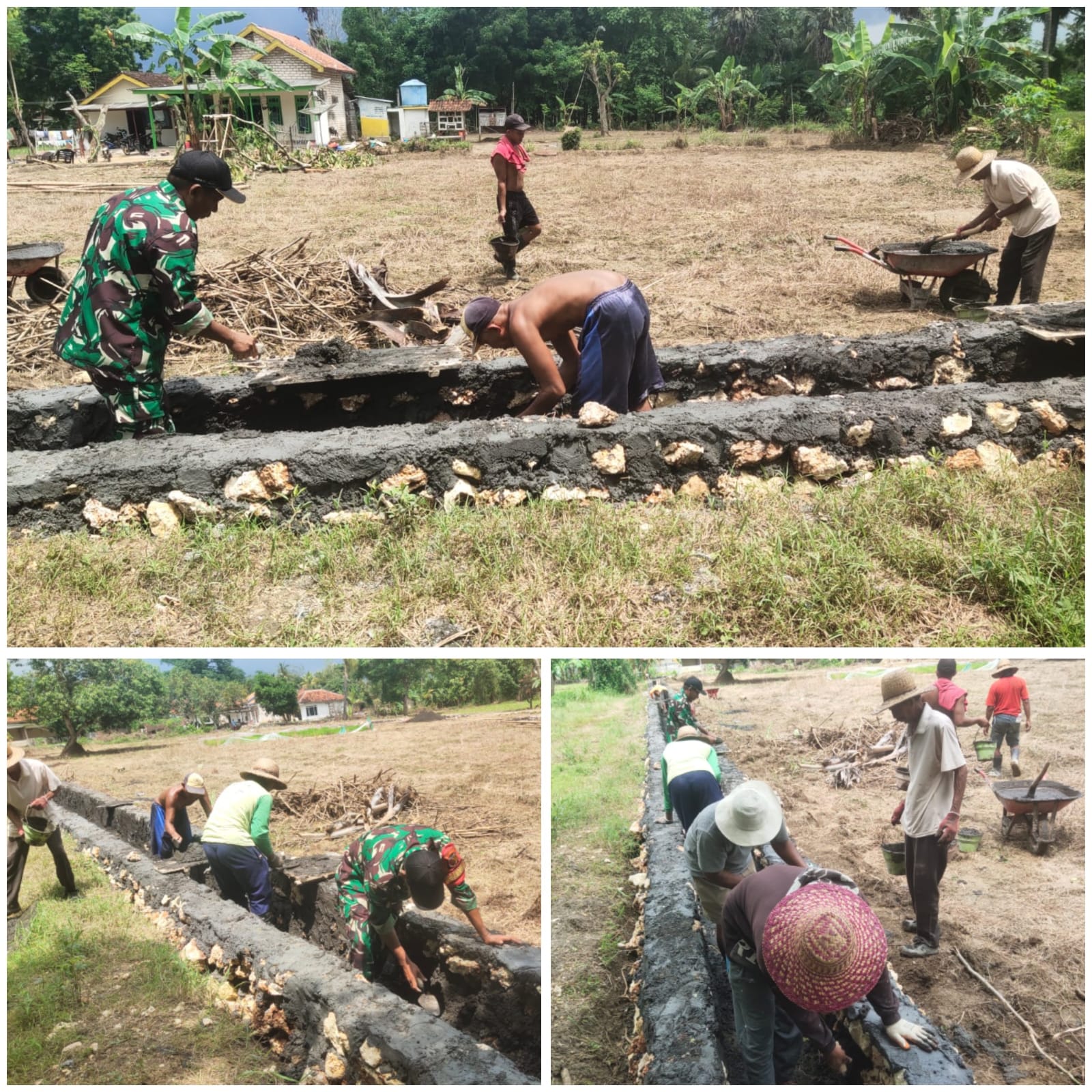 Warga lanjut dia, tampak antusias mengikuti kerja bakti bersama Babinsa. Dengan peralatan sederhana, masyarakat bahu membahu menggali tanah, memasang pondasi, hingga merapikan kembali lingkungan sekitar.