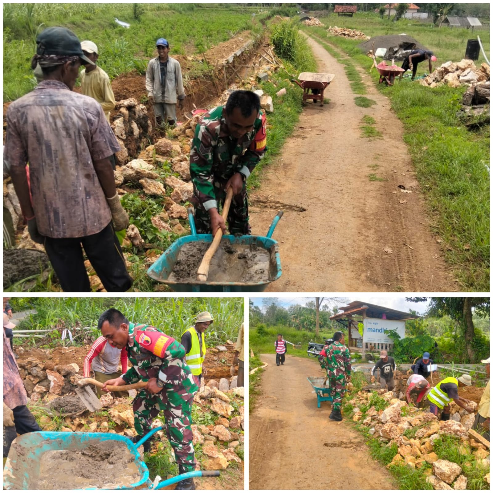 SUMENEP — Babinsa Koramil 12/Dasuk Kodim 0827/Sumenep, Serka Wahyono, melaksanakan kerja bakti bersama warga dalam pembangunan saluran air di Desa Kerta Barat, Kecamatan Dasuk, Kabupaten Sumenep. Rabu (17/12/2025).