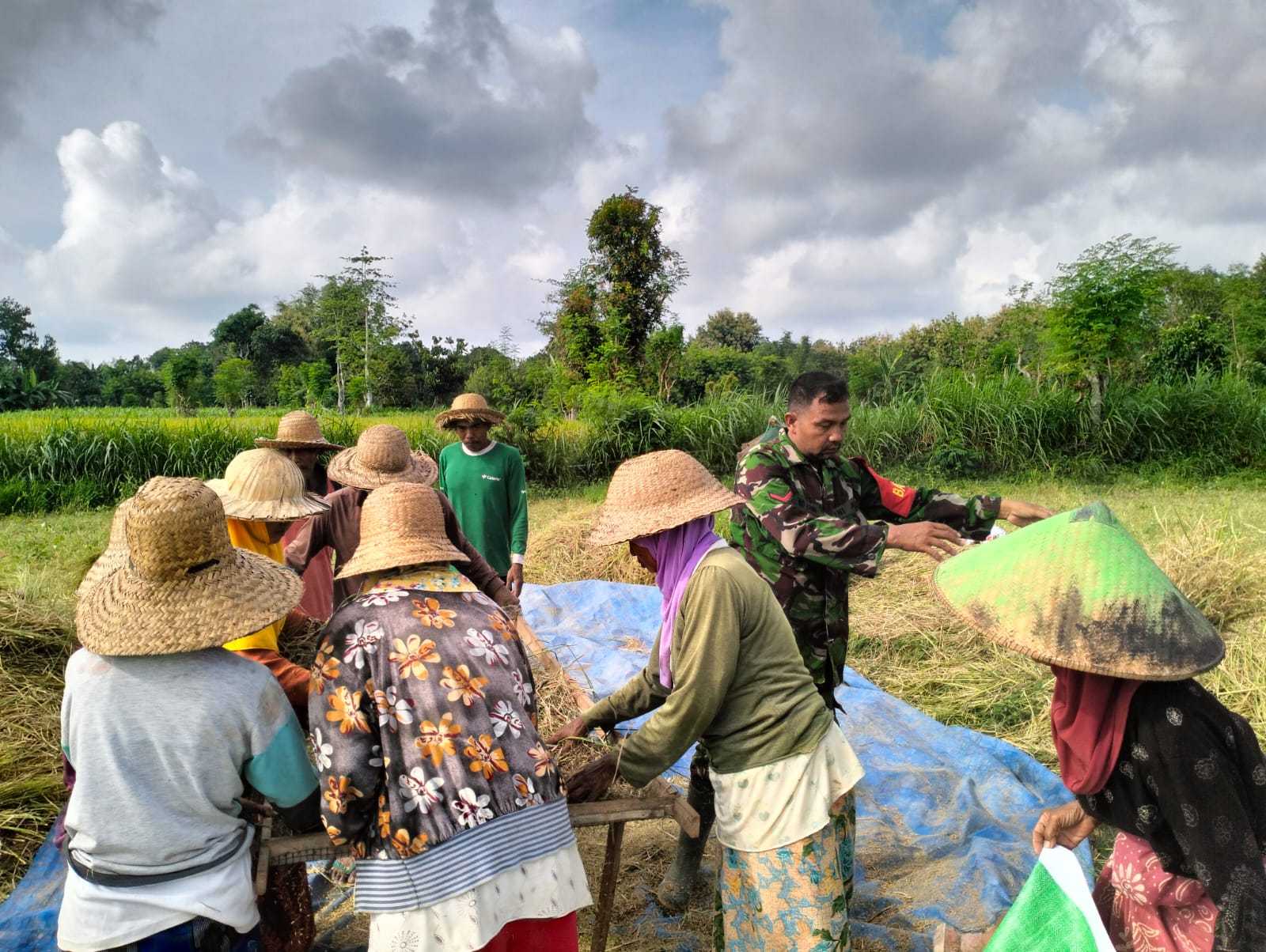 SUMENEP – Babinsa Koramil 0827/15 Batu Putih Koptu Ahmad, turut serta membantu para petani dalam kegiatan panen padi tahap kedua di Desa Bantelan, Kecamatan Batu Putih, Kabupaten Sumenep, pada Sabtu (12/07/2025).