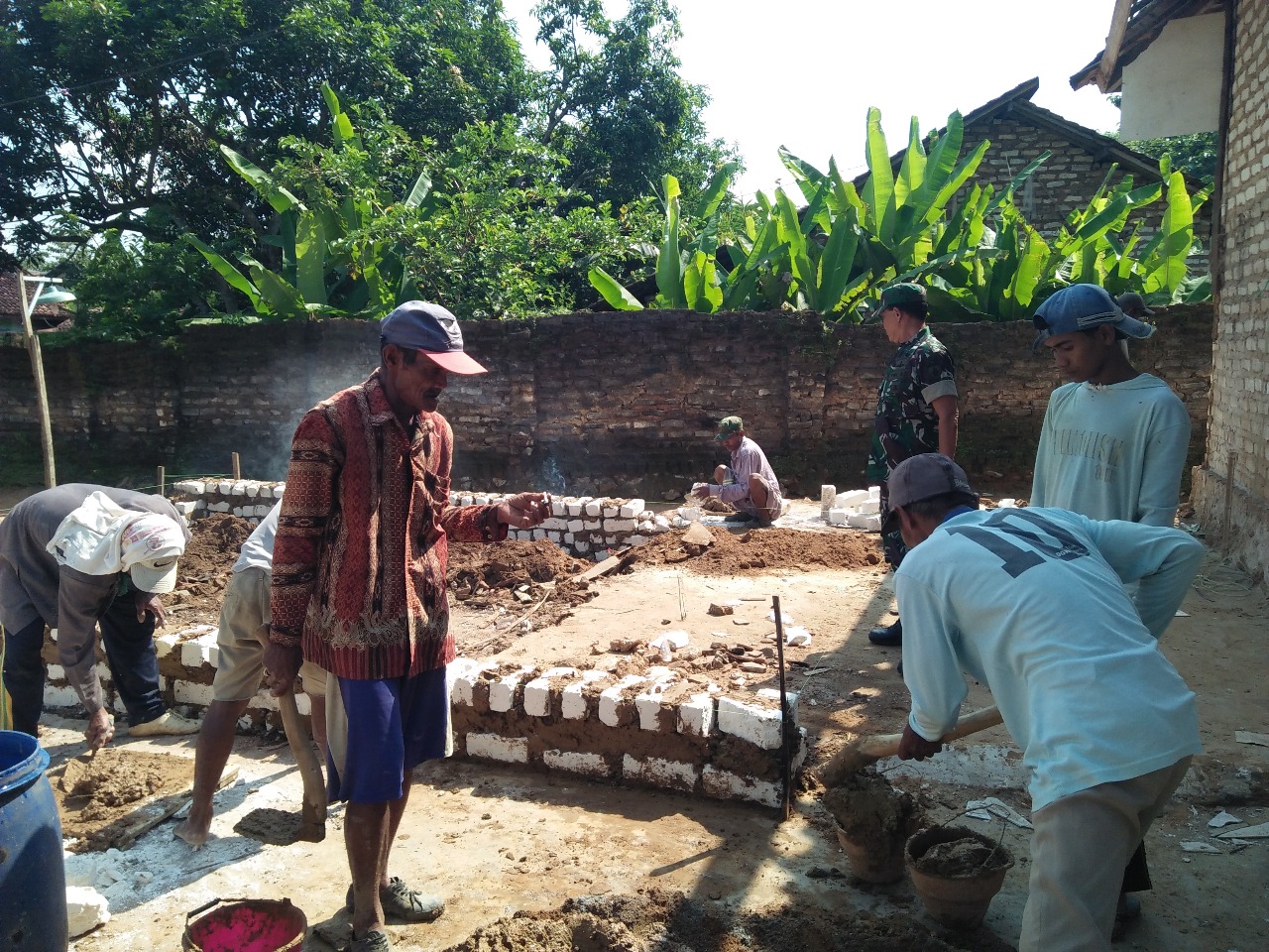 Kegiatan gotong royong tersebut dilakukan bersama warga setempat guna mempercepat proses pembangunan rumah milik Bapak Rasid yang saat ini sedang dalam tahap pembuatan pondasi. Dengan semangat kebersamaan, Babinsa ikut mengaduk semen, mengangkat batu, dan membantu menata pondasi bersama masyarakat.