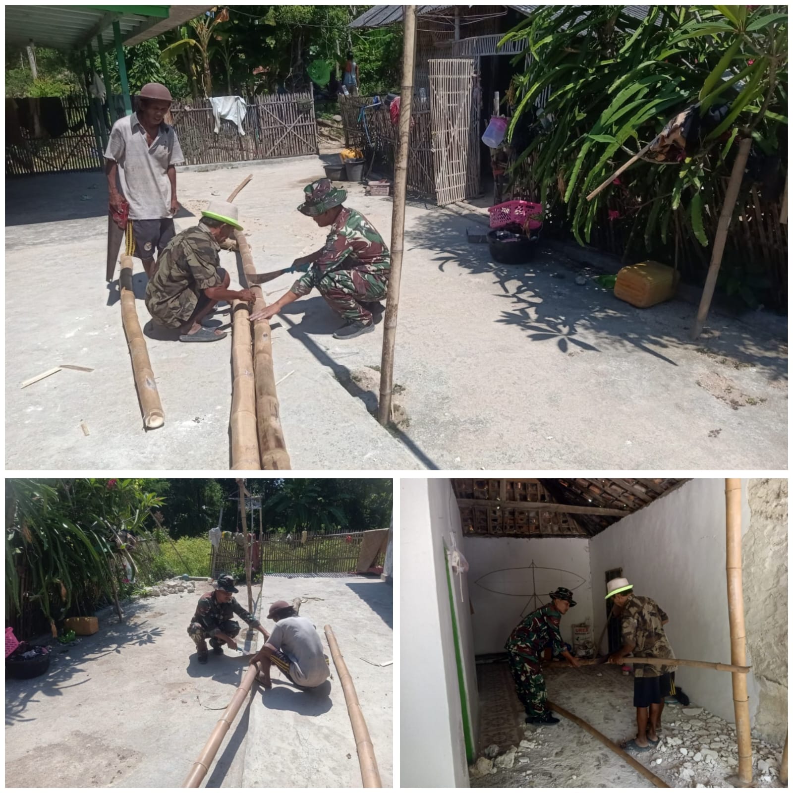 SUMENEP – Wujud kepedulian terhadap kesulitan masyarakat, Babinsa Koramil 0827/16 Gapura, Serka Mofiq melaksanakan kegiatan karya bakti membantu warga memotong tiang bambu untuk pembangunan atap rumah yang bocor, bertempat di Desa Gapura Barat, Kecamatan Gapura, Kabupaten Sumenep, Madura, Jawa Timur, pada Senin (26/1/2026).