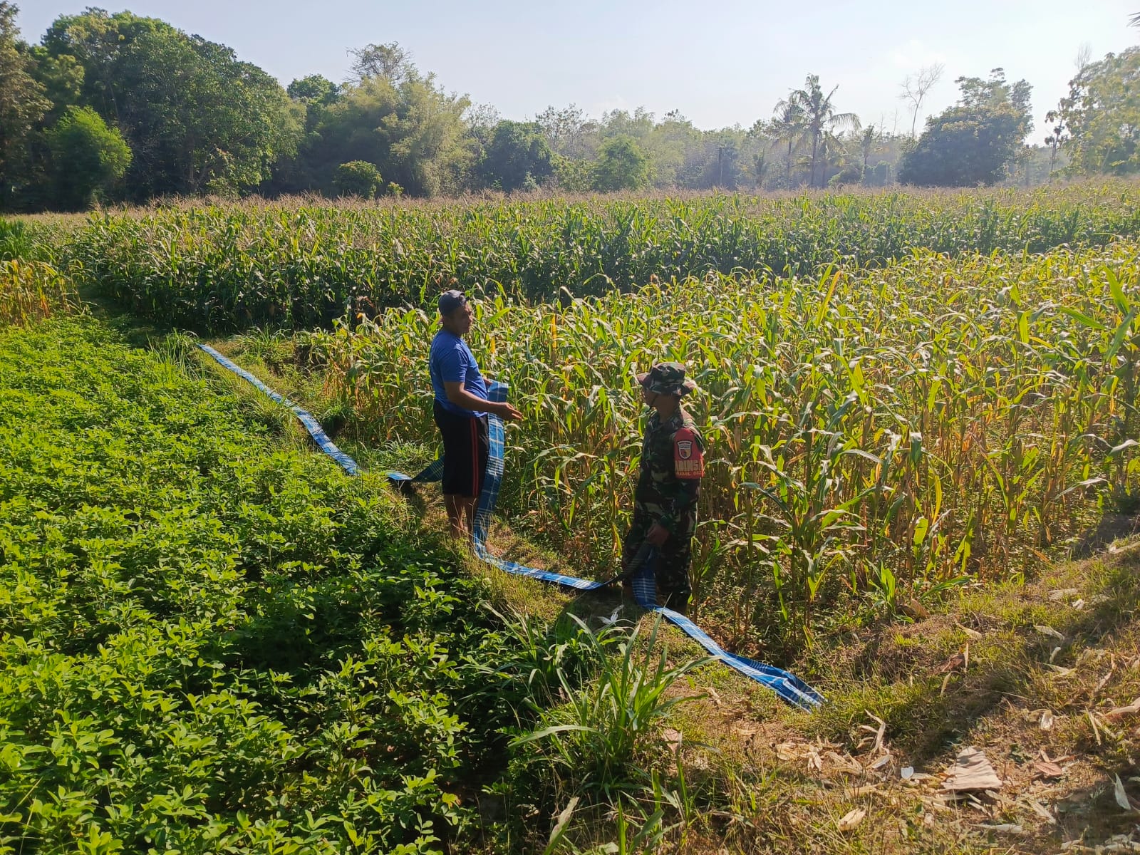SUMENEP – Dalam upaya mendukung ketahanan pangan di wilayah binaannya, Koptu Hery Kiswanto, Babinsa Posramil 0827/02 Talango, melaksanakan kegiatan pompanisasi untuk menyiram tanaman jagung milik warga di Dusun Guntong, Desa Essang, Kecamatan Talango, Kabupaten Sumenep, Senin (20/10/2025).