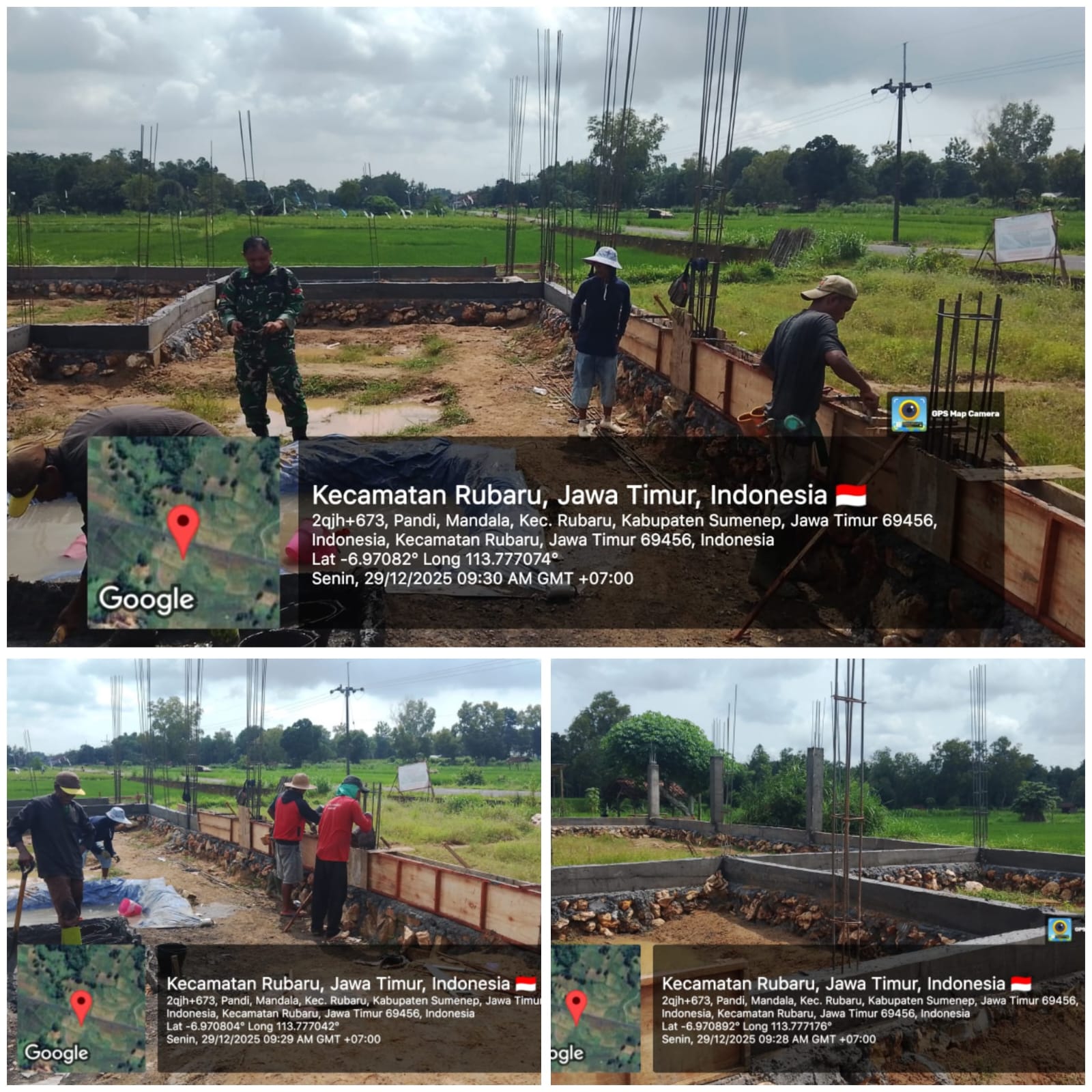 “Perkembangan hari ini fokus pada penguatan struktur dasar bangunan. Bekisting dan rangka besi pondasi sudah terpasang, kemudian dilanjutkan pengecoran sebagai fondasi utama koperasi,” ujar Sertu Hari Yuli Setyono di lokasi kegiatan.