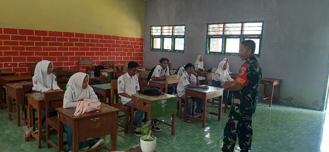 SUMENEP – Babinsa Koramil 0827/19 Sapeken, Serda Eko S, memberikan materi Wawasan Kebangsaan (Wasbang) kepada para siswa-siswi SMAN 1 Sapeken, Kecamatan Sapeken, Kabupaten Sumenep. Rabu (01/10/2025).