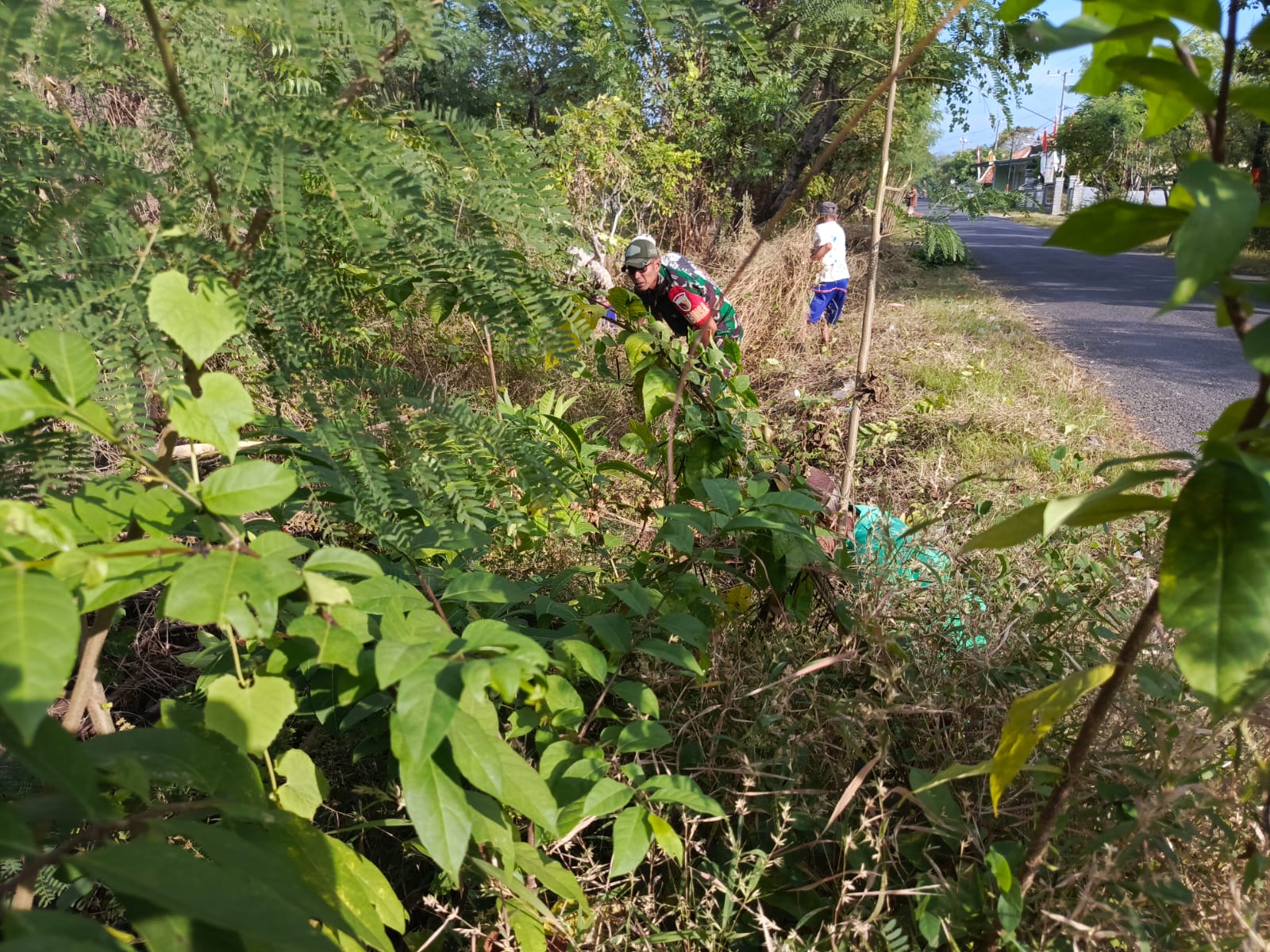 Kegiatan tersebut dilaksanakan secara swadaya bersama masyarakat setempat dengan fokus membersihkan sisi-sisi jalan yang mulai tertutup oleh rumput liar dan semak belukar. Aksi ini merupakan bagian dari pembinaan teritorial yang rutin dilakukan Babinsa sebagai bentuk kepedulian terhadap lingkungan serta mempererat kemanunggalan TNI dengan rakyat.
