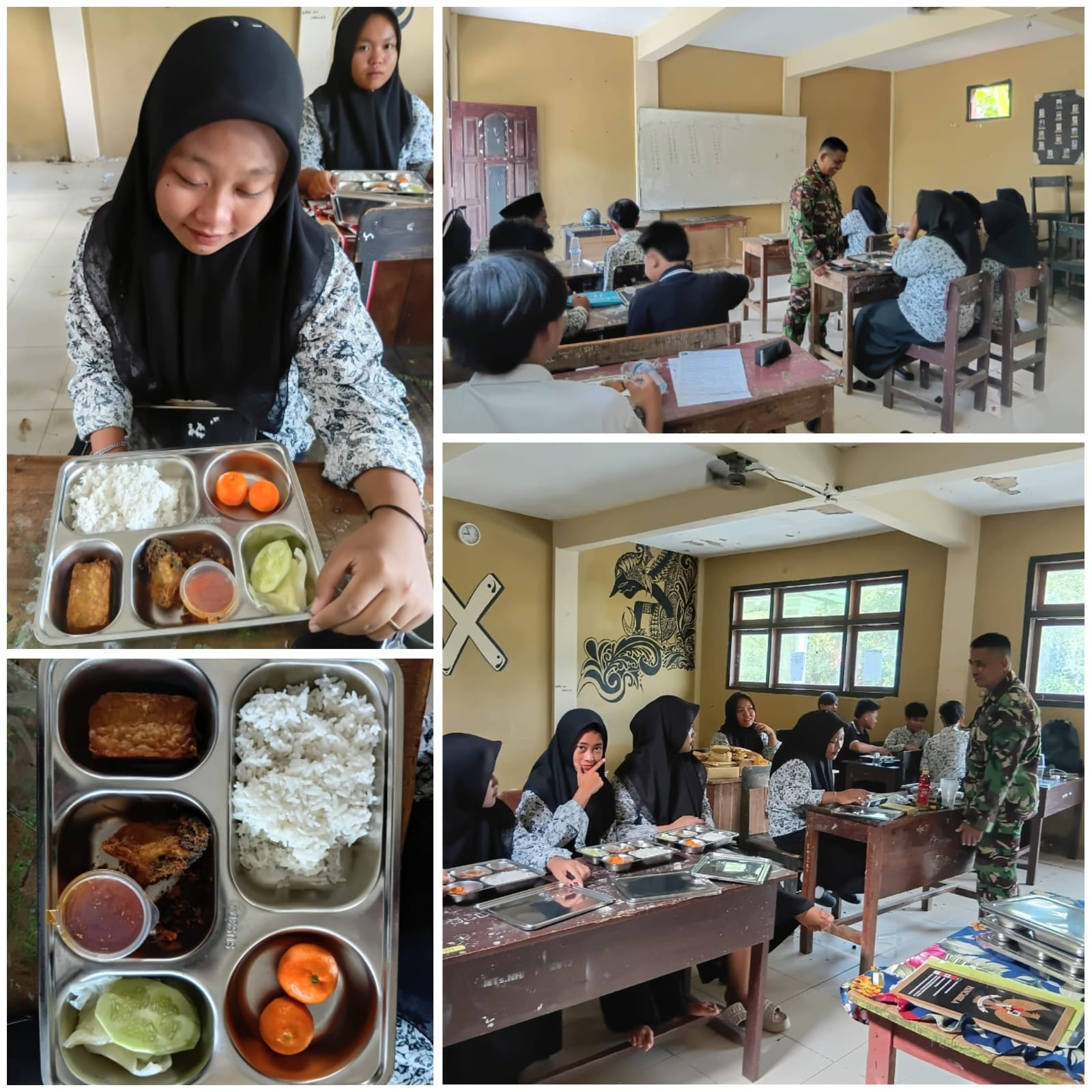 Pendampingan Babinsa dalam kegiatan ini menjadi bentuk kehadiran aparat kewilayahan di tengah masyarakat, khususnya dalam mendukung pemenuhan gizi dan kenyamanan siswa saat menerima program pemerintah.