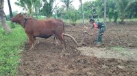 Agar TNI Semakin Dekat dengan Masyarakat, Babinsa Desa Banjar Barat, Bantu Warga Bajak Lahan Jagung Gunakan Sapi