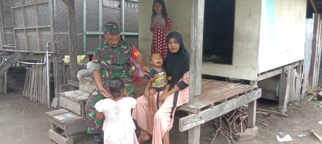SUMENEP – Personil Babinsa Koramil 0827/19 Sapeken Koptu Yusuf melaksanakan kegiatan silaturahmi dalam rangka idul Fitri dan mengecek kesehatan bagi anak yang terdampak Stunting didusun Cabbe Desa Paliat kecamatan Sapeken kabupaten Sumenep, Senin ( 7/4/2025 ).