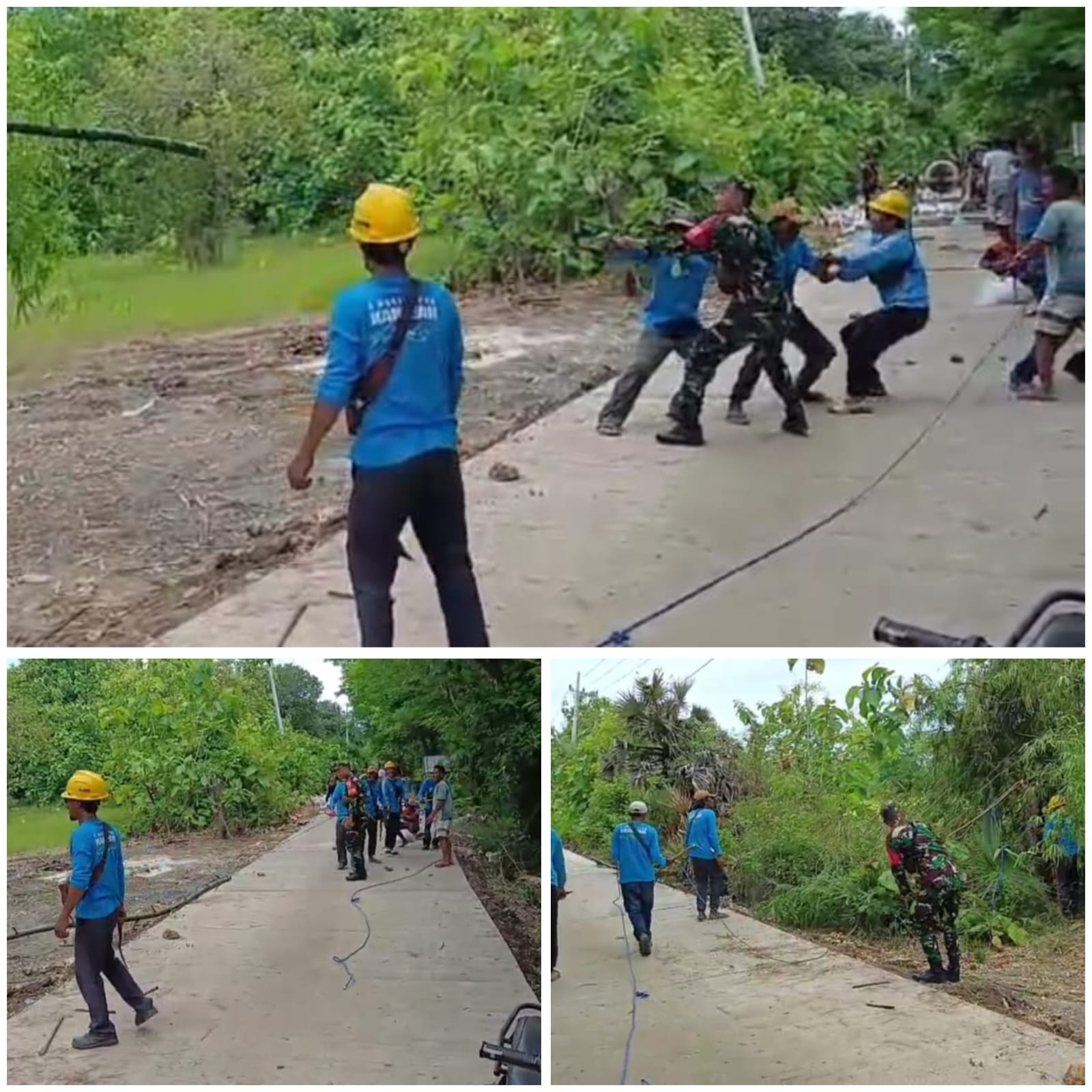 SUMENEP – Dalam rangka menjaga kebersihan dan ketertiban lingkungan, Babinsa Koramil 21/Ra’as Kodim 0827/Sumenep Praka Dani Andri dan masyarakat melakukan kegiatan gotong royong pemangkasan pohon di lingkungan Desa Poteran Kecamatan Ra’as Kabupaten Sumenep. Jum’at (19/12/2025).