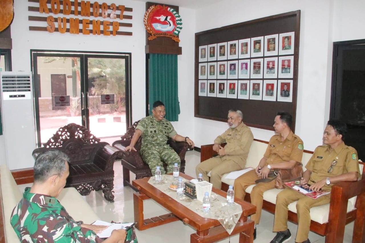 SUMENEP – Komandan Kodim 0827/Sumenep, Letkol Arm Bendi Wibisono menerima kunjungan Kepala Dinas Pemberdayaan Masyarakat dan Desa (DPMD) Kabupaten Sumenep, Anwar Syahroni Yusuf beserta staf di Makodim 0827/Sumenep, Senin (13/10/2025).