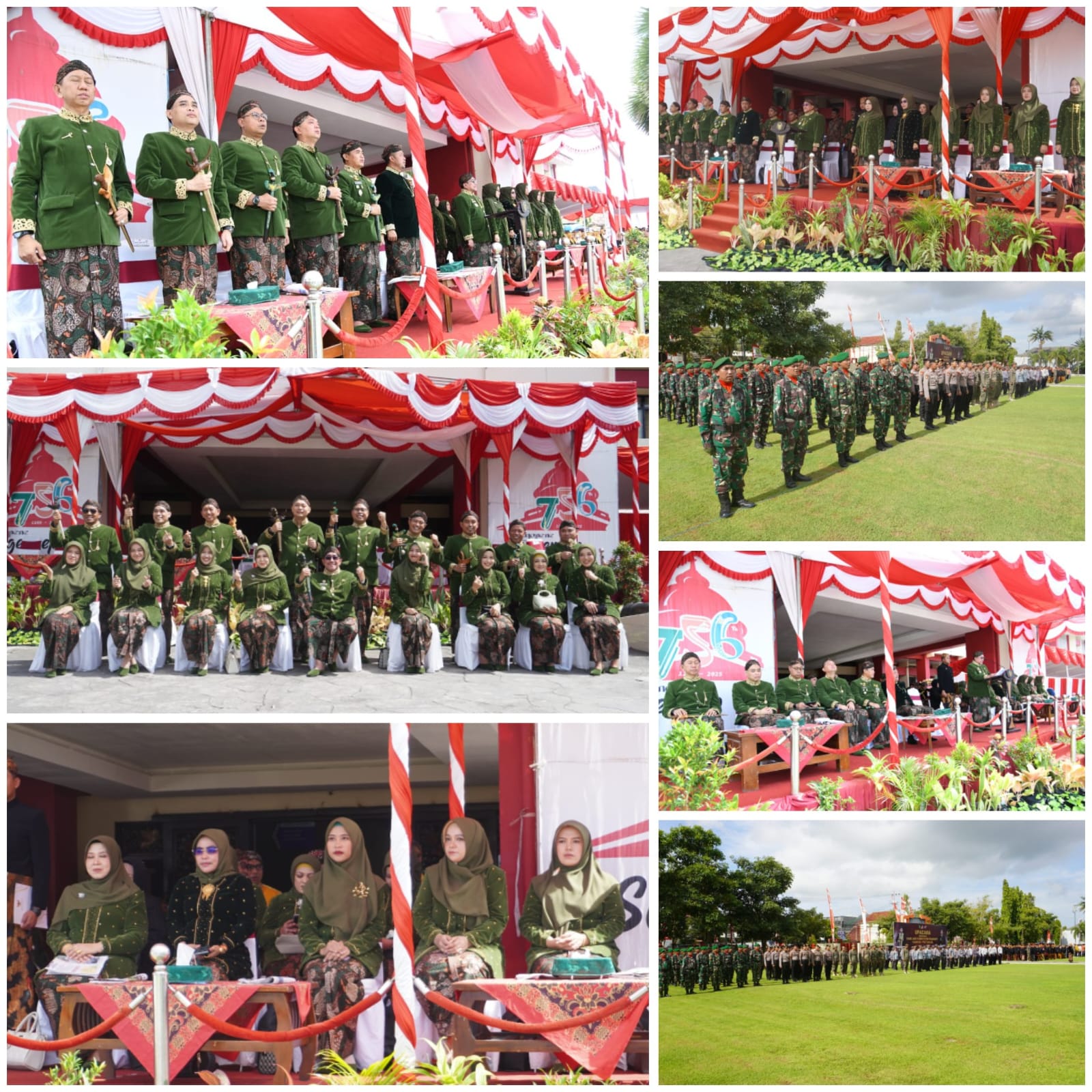 Komandan Kodim 0827/Sumenep Letkol Arm Bendi Wibisono, S.E., M.Han bersama Ketua Persit KCK Cabang XLVI Kodim 0827 Ny. Tiara Bendi Wibisono turut hadir dalam upacara yang dipimpin oleh Wakil Bupati Sumenep KH. Imam Hasyim, S.H., M.H.