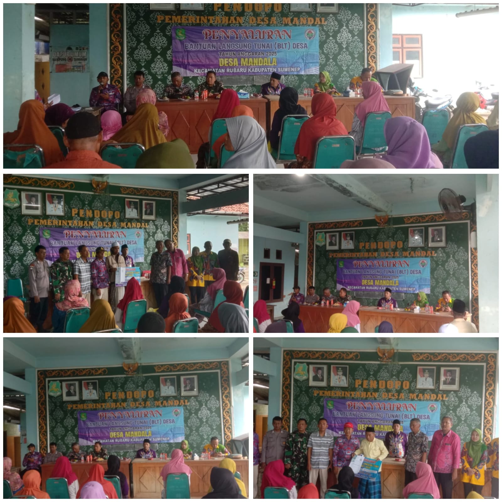 SUMENEP – Aparat TNI bersama unsur Muspika Rubaru melakukan monitoring pendistribusian Bantuan Langsung Tunai Dana Desa (BLT DD) Triwulan IV Tahun 2025 di Balai Desa Mandala, Kecamatan Rubaru, Kabupaten Sumenep, Kamis (18/12/2025).