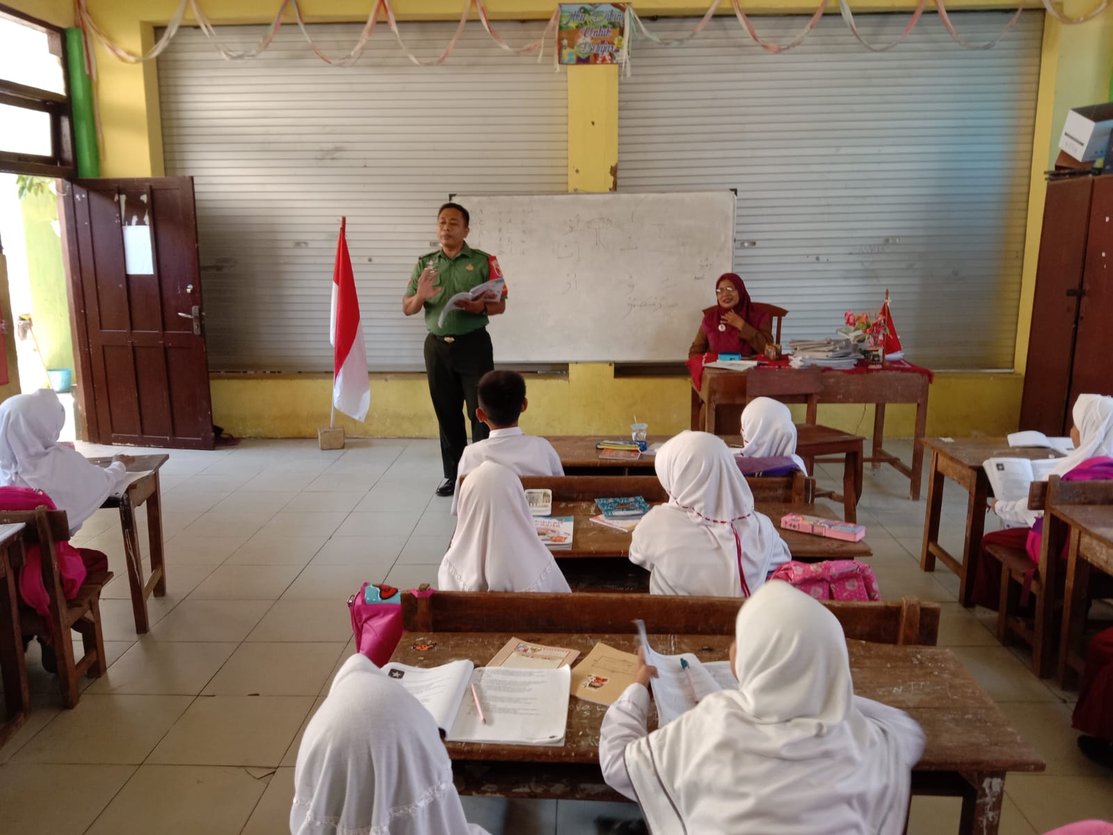 Hal itu diterapkan dengan pemberian materi wawasan kebangsaan kepada siswa siswi di SDN Padike III Kecamatan Talango, Kabupaten Sumenep. Dihadapan para siswa siswi Babinsa Koptu Tomy serius memberikan materi untuk bekal masa depan.