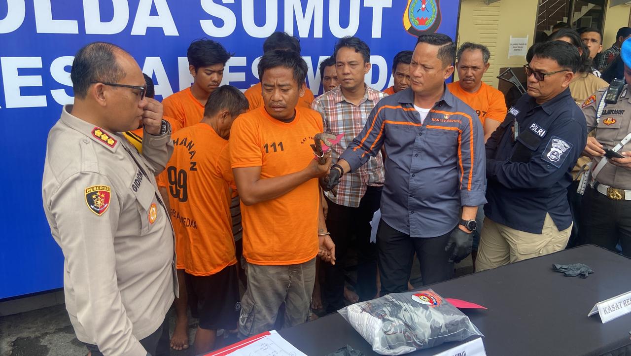 Sementara enam orang tersangka lagi masing-masing, E alis Ewin (39) warga Dusun IV Desa Sena, Batang Kuis, S alias Adi (51) warga Batang Kuis, MIP (38) warga Titi Kuning Gang Suka Tirta, Medan Johor, YS alias Yosafat (28) warga Kompleks Taman Hako Indah, Medan Helvetia, BS (31), dan RMR (22).