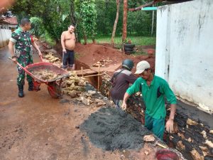 Sumenep, Jatim | suaranasionalnews.co.id – Babinsa Koramil 0827/15 Batuputih, Serka Guno Widagdo bersama warga Desa Sergang, Kecamatan Batuputih Kabupaten Sumenep, gotong royong membangun saluran irigasi di sepanjang jalan kampung, Minggu (18/5/2025).