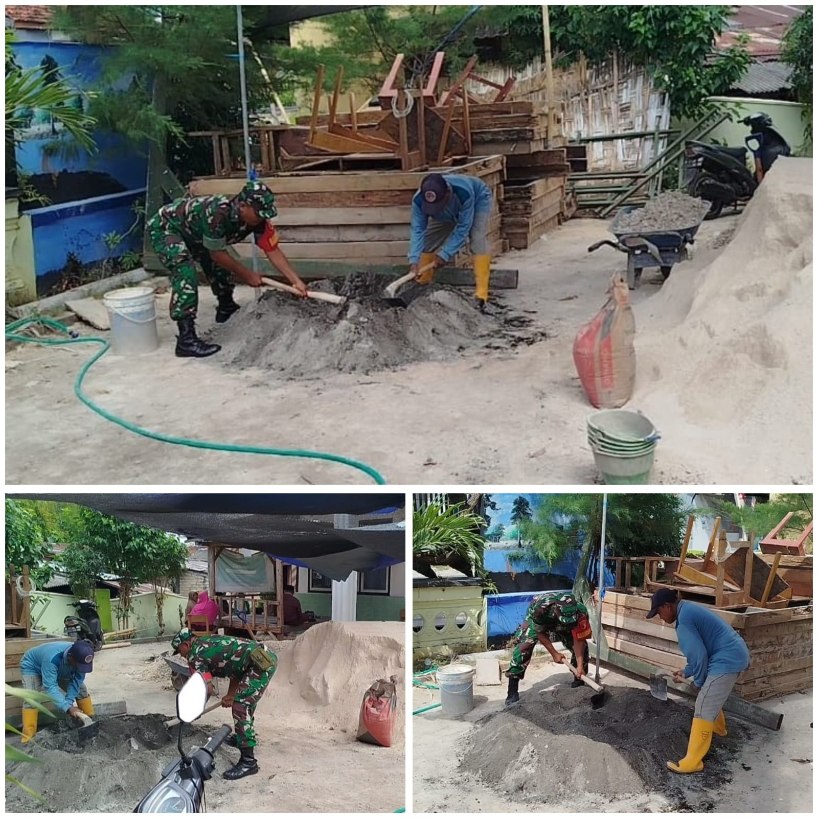 SUMENEP – Babinsa Koramil 06/Saronggi Kodim 0827/Sumenep Serka Abiyoso bersama masyarakat Desa Tanjung melaksanakan kegiatan karya bhakti pembangunan rumah di Desa Tanjung Kecamatan Saronggi Kabupaten Sumenep, Selasa (16/12/2025).