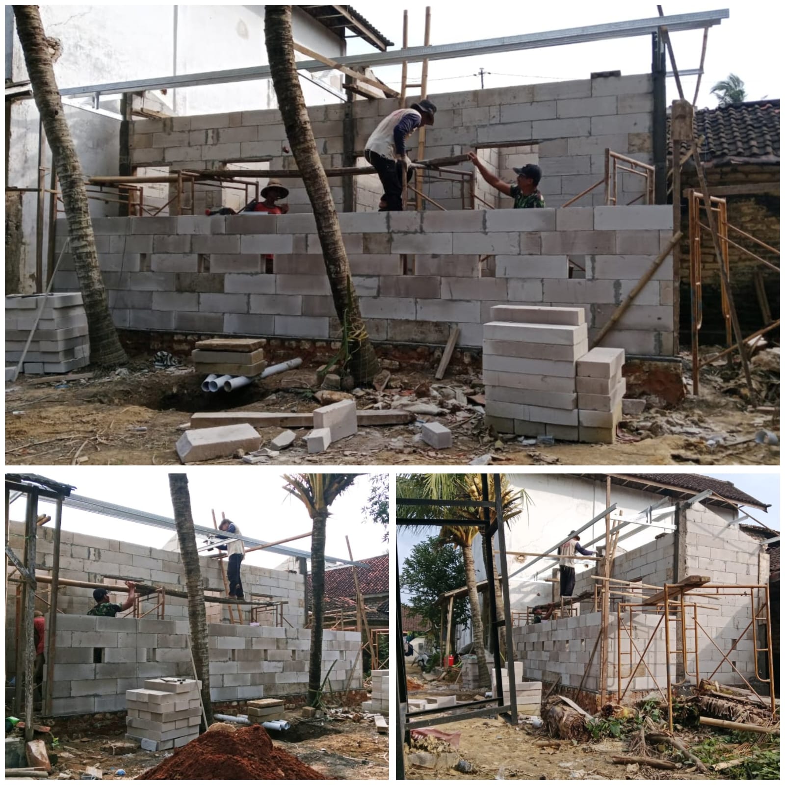 Progres pembangunan menunjukkan hasil signifikan. Sejumlah tahapan telah diselesaikan, antara lain pemasangan rangka atap MCK dan pengurukan pondasi. Sementara itu, pekerjaan pemasangan bata ringan untuk bak mandi dan WC masih terus dilanjutkan.