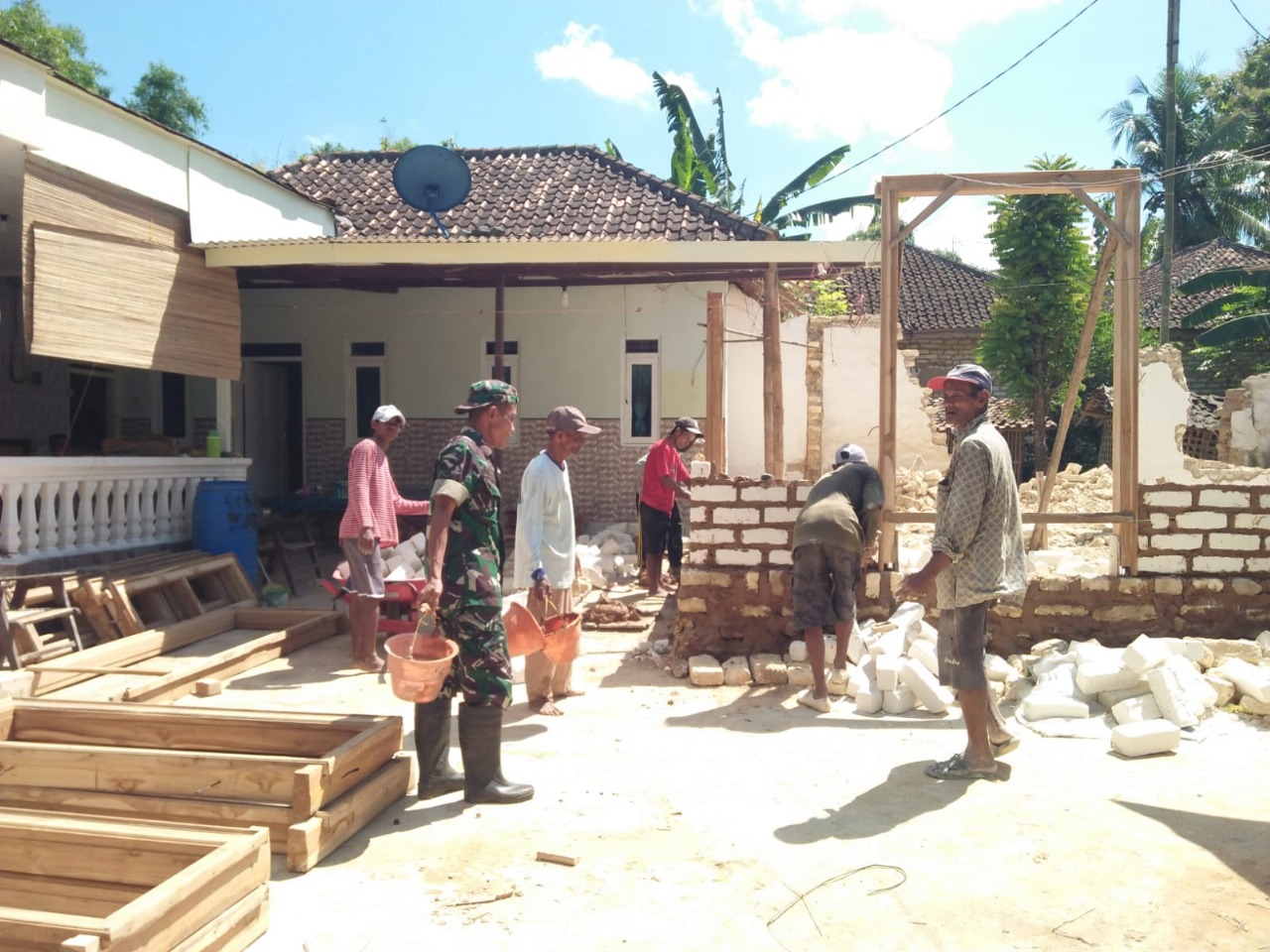 Kehadiran Babinsa di tengah masyarakat tidak hanya sebatas dalam menjaga keamanan dan ketertiban wilayah, namun juga aktif dalam kegiatan sosial kemasyarakatan. Hal ini ditunjukkan oleh Serka Mofiq yang dengan semangat gotong royong membantu proses pembangunan rumah milik Bapak Hasan, salah satu warga kurang mampu di desa tersebut.
