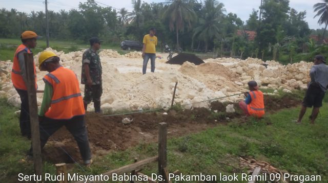 Babinsa Koramil 0827/04 Bluto Bantu Warga Buat Campuran Semen Bangun Rumah