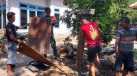 Babinsa Gotong Royong Bersama Masyarakat Bantu Bangun Rumah Warga