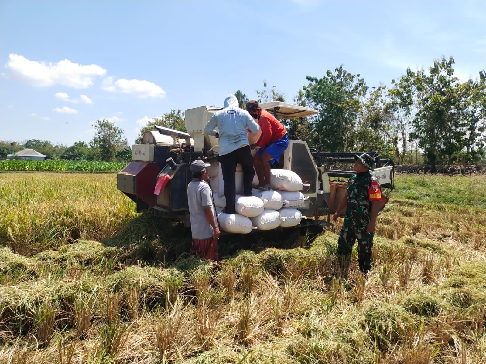 Babinsa Koptu Evit Priyadi mengatakan proses panen menggunakan mesin combine untuk memastikan hasil panen optimal dan efisien.