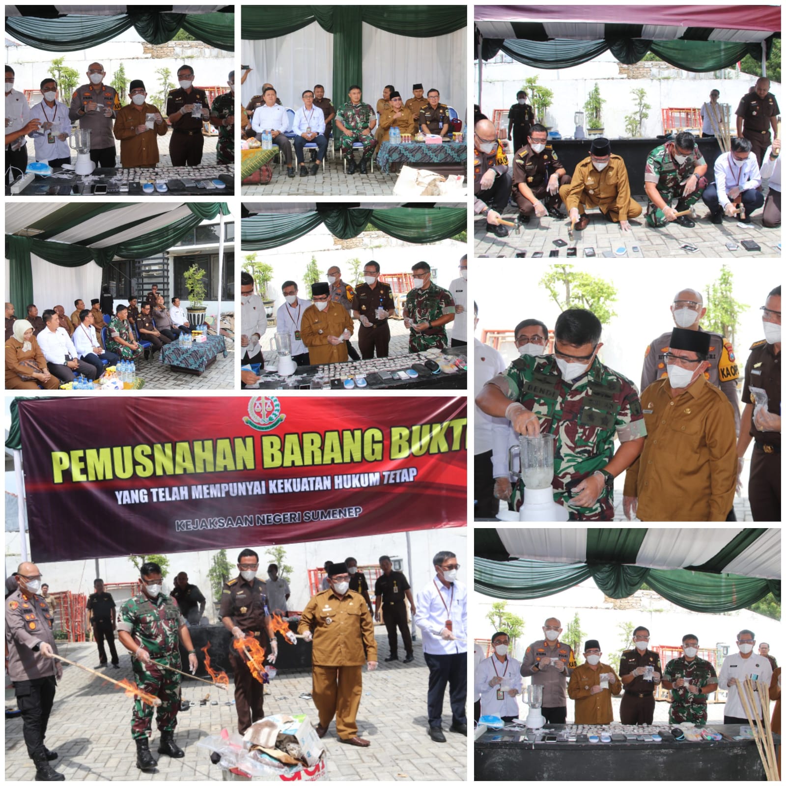 Pemusnahan barang bukti ini turut dihadiri Wakil Bupati Sumenep KH Imam Hasyim, Kepala Kejari Sumenep Dr. I Ketut Kasna Dedi, Kapolres Sumenep AKBP Rivanda, perwakilan Pengadilan Negeri, Karutan, BNNK, serta Direktur RSUD dr. H. Moh. Anwar Sumenep dr. Erliyanti, bersama sejumlah undangan lainnya.