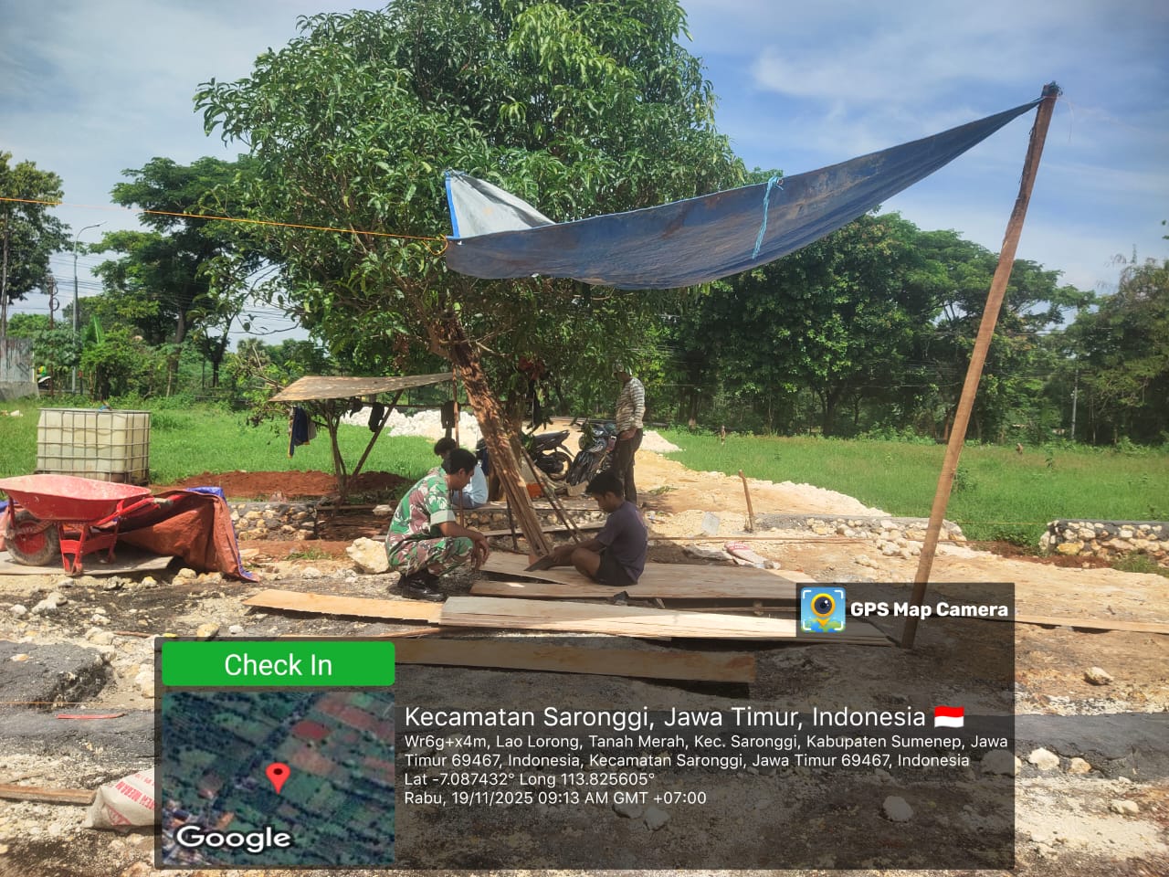 Pada Rabu (19/11/2025), personel Koramil 0827/06 Saronggi, Serda Jusa, kembali turun langsung ke lokasi untuk melakukan pengawasan teknis sejak pukul 08.03 WIB.