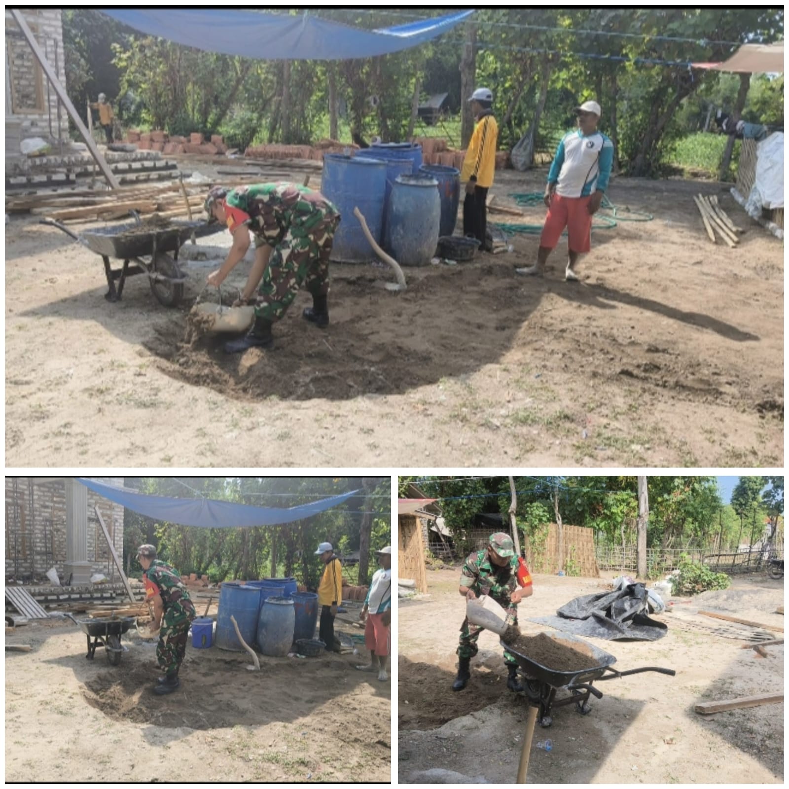 Kegiatan gotong royong tersebut dilakukan sebagai bentuk pembinaan teritorial serta untuk meringankan beban masyarakat dalam pembangunan rumah. Serda Herson tampak bahu-membahu bersama warga mengaduk semen dan menyiapkan bahan bangunan lainnya.