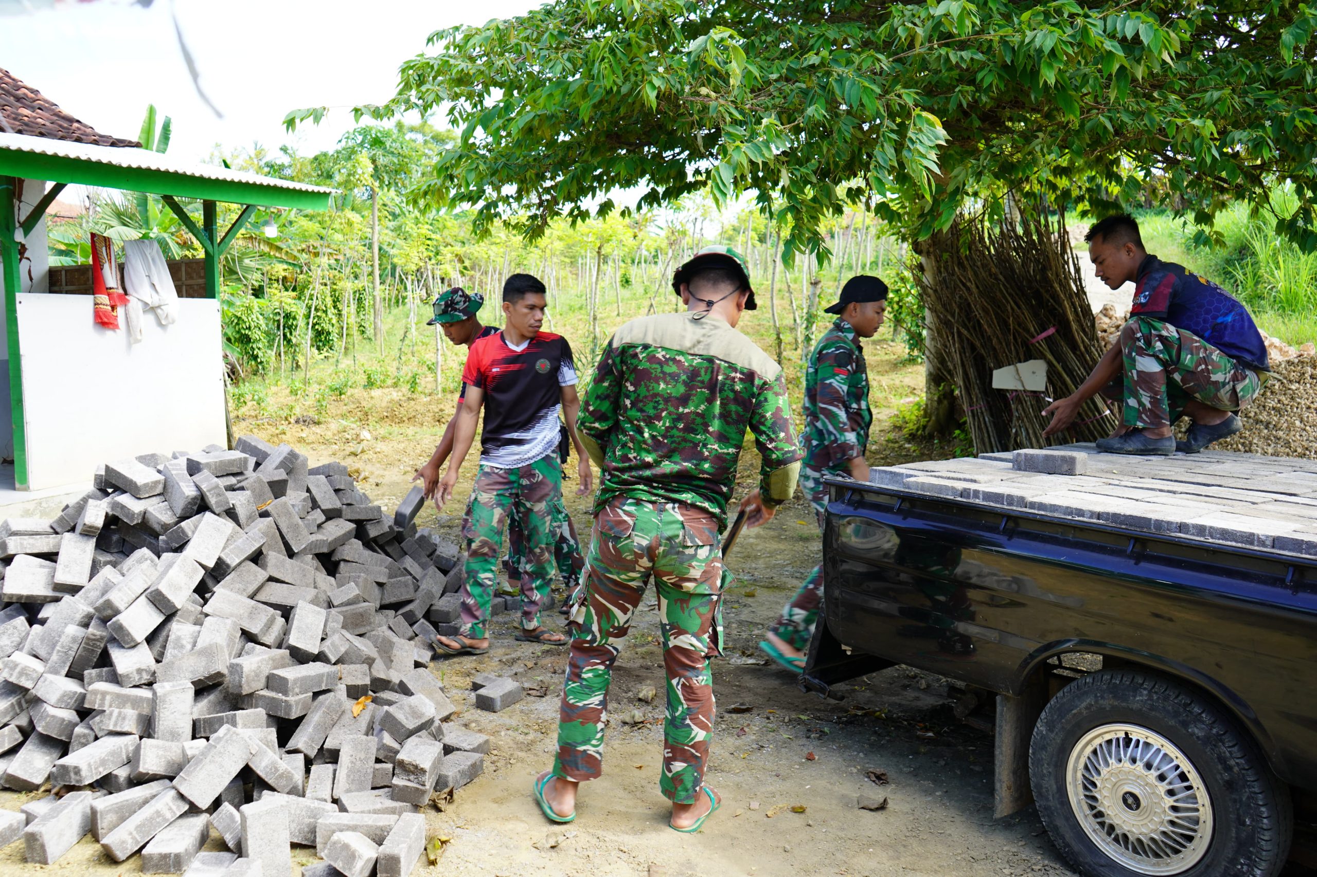 Di lokasi kegiatan, Pratu Rio tampak sigap menaikkan material paving block ke atas kendaraan angkut guna memperlancar proses distribusi ke titik pemasangan. Meski cuaca cukup terik, hal tersebut tidak menyurutkan semangat personel Satgas TMMD dalam menyelesaikan pekerjaan sesuai target yang telah ditentukan.