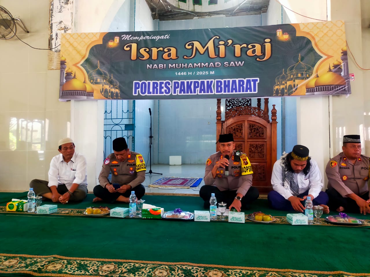 Salak | suaranasionalnews.co.id – Polres Pakpak Bharat Gelar Isra’ Mi’raj 1446/2025 bertempat di Mesjid Agung Kota Salak, Kabupaten Pakpak Bharat Provinsi Sumatera Utara, Selasa 04 Februari 2025 sekira pukul 08.30 wib s/d 11.00 wib.