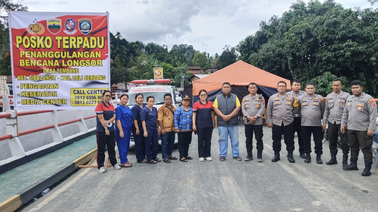 SIBOLANGIT – Polrestabes Medan bersama pihak terkait mendirikan posko terpadu penanggulangan bencana longsor di Desa Sembahe, Kec. Sibolangit, Kab. Deli Serdang, Sumatera Utara, Jumat (29/11).
