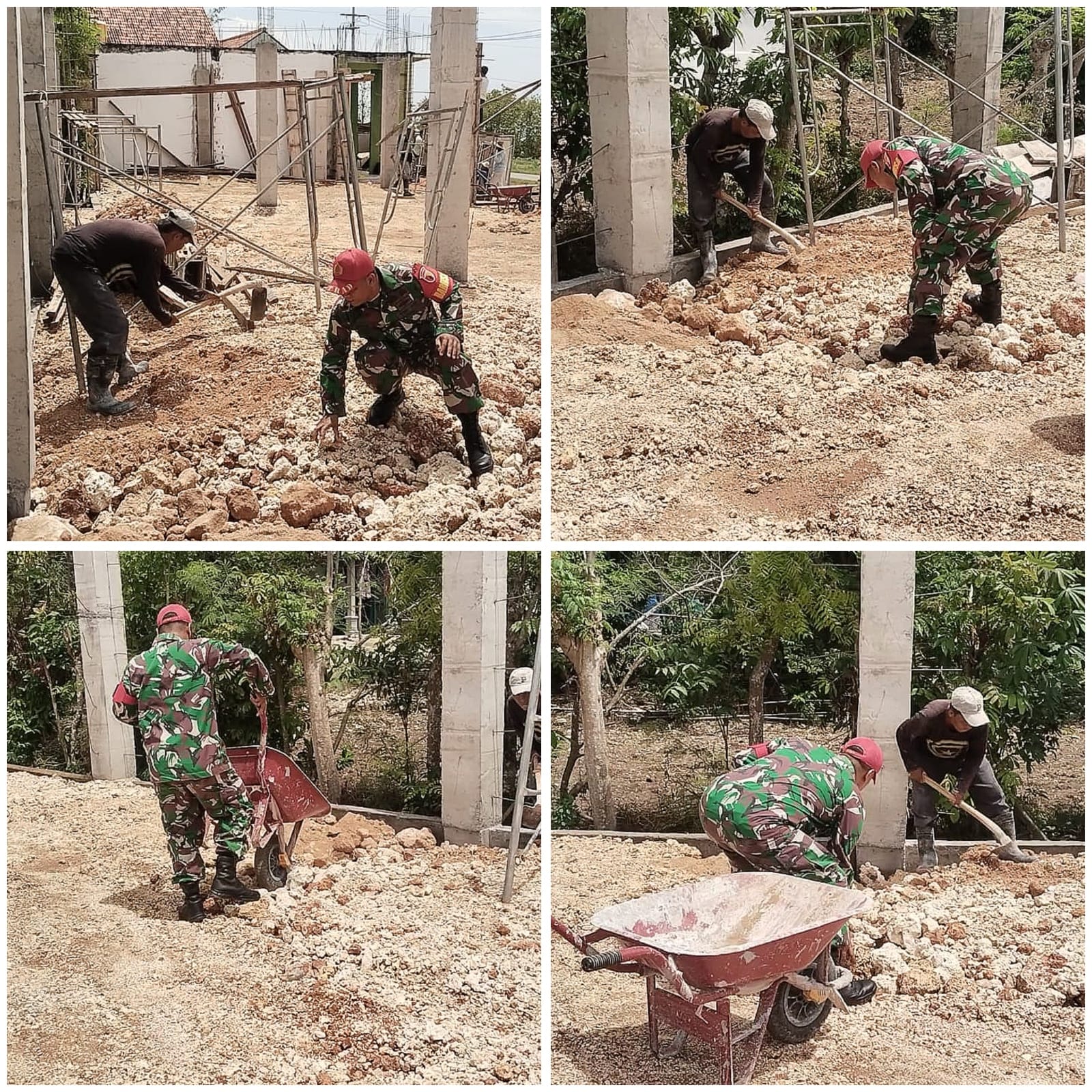 Sumenep – Dalam rangka meningkatkan kesejahteraan masyarakat dan memupuk rasa kebersamaan Babinsa Koramil 04/Bluto Kodim 0827/Sumenep Sertu Joko bersama warga membantu meratakan tanah di Desa Bluto Kecamatan Bluto Kabupaten Sumenep, Kamis (6/11/2025).