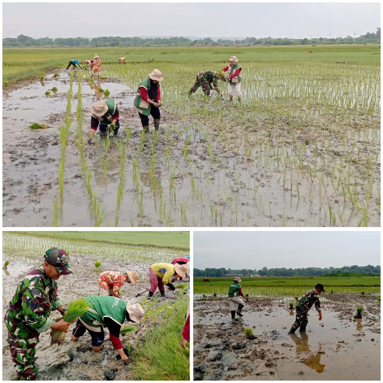 Kegiatan ini merupakan bagian dari pendampingan Babinsa kepada para petani dalam mendukung program swasembada pangan nasional. Serma Ridwan terlihat bersama petani turun ke sawah, membantu proses tanam padi secara manual sebagai bentuk motivasi dan kebersamaan dengan masyarakat binaannya.