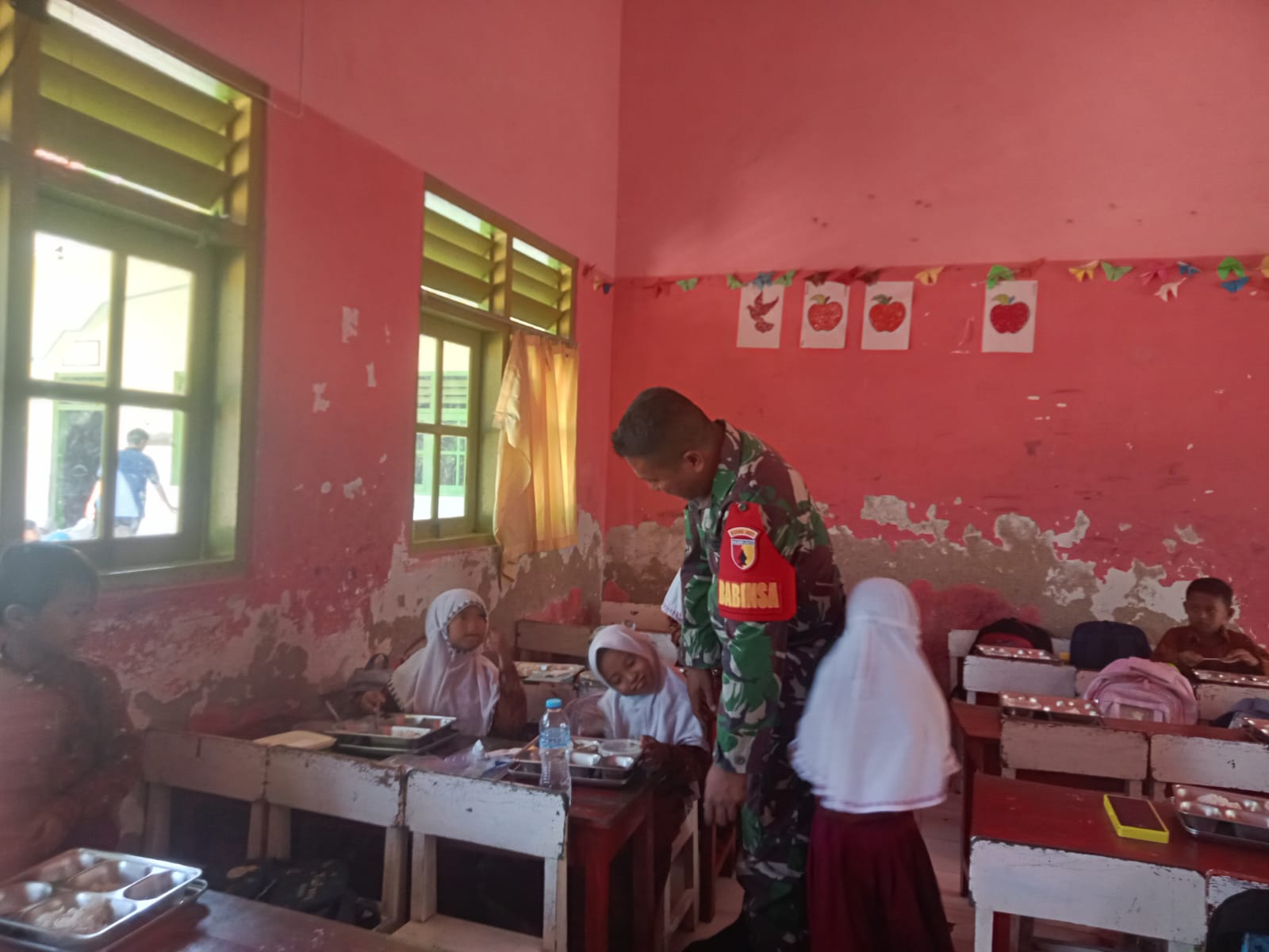 Dalam kegiatan itu, Sertu Masturi bersama perangkat desa serta pihak sekolah memastikan pendistribusian makanan berjalan tertib, tepat sasaran, dan sesuai standar kebersihan.