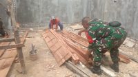 Tiada Kenal Lelah, Anggota Koramil 0827/16 Gapura Bantu Bangun Rumah Warga