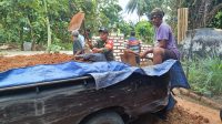 Babinsa Koramil 10/Ambunten Bantu Warga Buat Adonan Semen Untuk Pembatas Jalan Desa