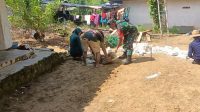 Babinsa Legung Barat Bantu Warga Mendirikan Pondasi Pagar Rumah