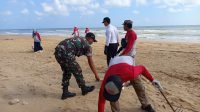 Babinsa Gelar Karya Bakti Bersihkan Sampah di Pinggir Pantai