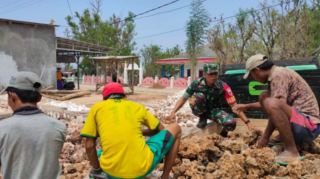 Babinsa Koramil 20/Sapudi, Serda Agus Bantu Warga Angkat Batu untuk Bangun Rumah di Desa Gayam