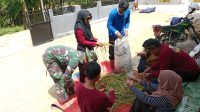 Babinsa Sertu Bintoro Dampingi PPL Laksanakan Pengubinan Hasil Panen Padi Warga