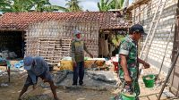Wujud Kemanunggalan TNI Bersama Rakyat, Babinsa Gotong Royong Bangun Rumah Warga