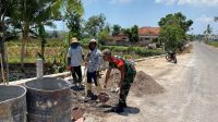 Babinsa Koramil 0827/08 Ganding dan Warga Laksanakan Kerja Bakti Cor Pembatas Jalan di Desa Gadu Timur