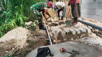 Cegah Longsor, Warga Masaran Sumenep Bersama Babinsa Bangun Tembok Penahan Tanah