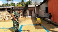 Menjaga Kualitas Hasil Panen, Babinsa Koramil 06/Saronggi Bantu Petani Jemur Padi