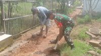 Babinsa Koramil 08/Ganding Ajak Warga Gotong Royong Bersihkan Jalan Desa
