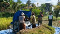 Sukseskan Ketahanan Pangan di Masyarakat, Serda Alip Bantu Petani Panen Padi
